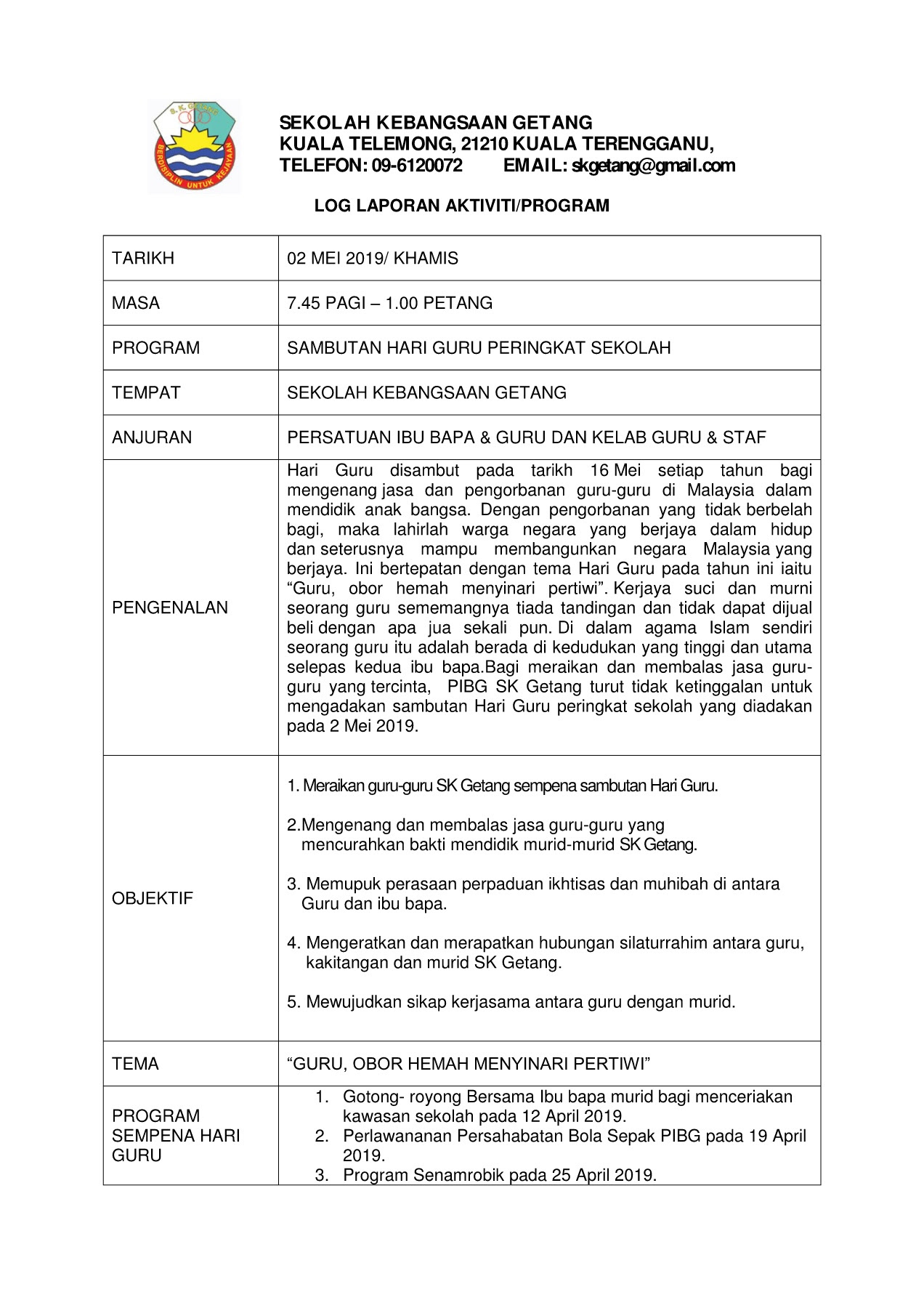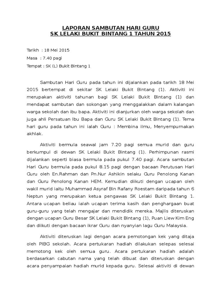 Laporan Sambutan Hari Guru Peringkat Sekolah Pdf